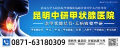 在线咨询昆明中研甲状腺医院是由昆明市卫健委批准建立的一所专业性的甲状腺专科医院,座落于昆明市盘龙区环城北路75号,医院集甲状腺医学研究、诊断治疗、康复于一体,专注为云南省乃至全国甲状腺疾病患者提供高品质的诊疗服务。 甲状腺病的发生对患者来说就是人生的...[详细]